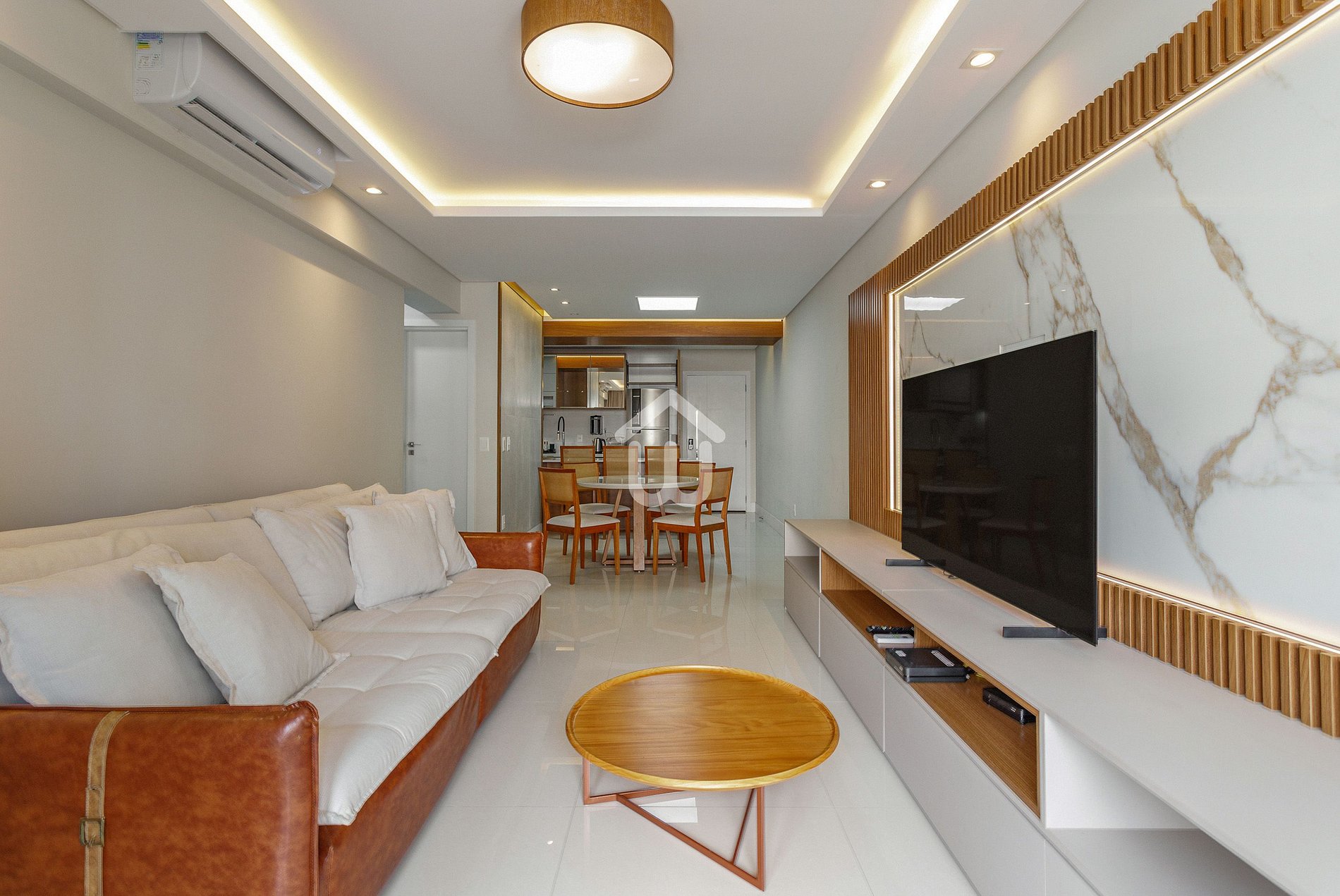Equipado com churrasqueira interna, ar-condicionado, Wi-Fi, Smart TV, lava e seca e 2 vagas de garagem, garante total praticidade.