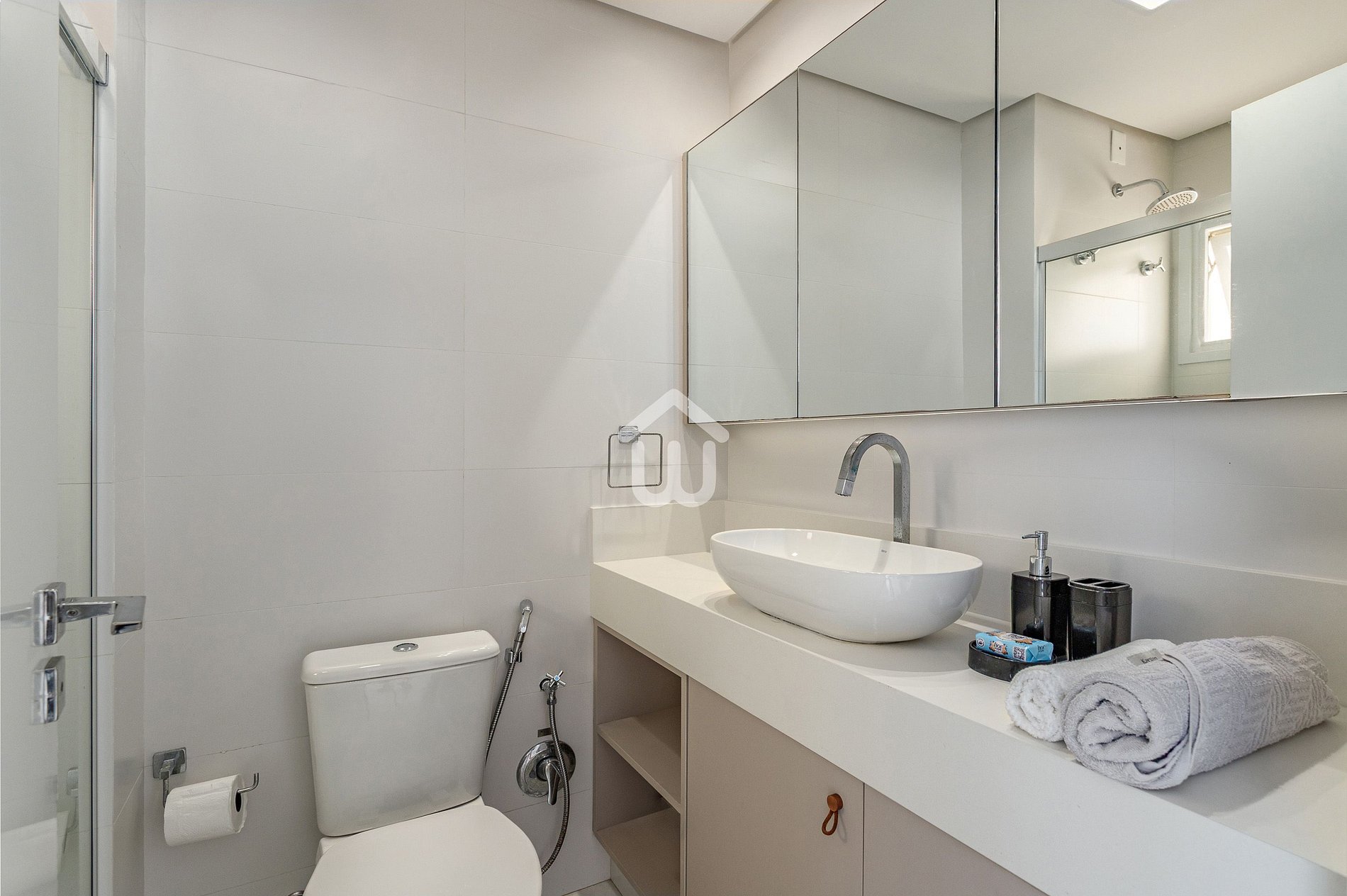 Para garantir sua total comodidade, o apartamento conta com enxoval completo de cama, mesa e banho.