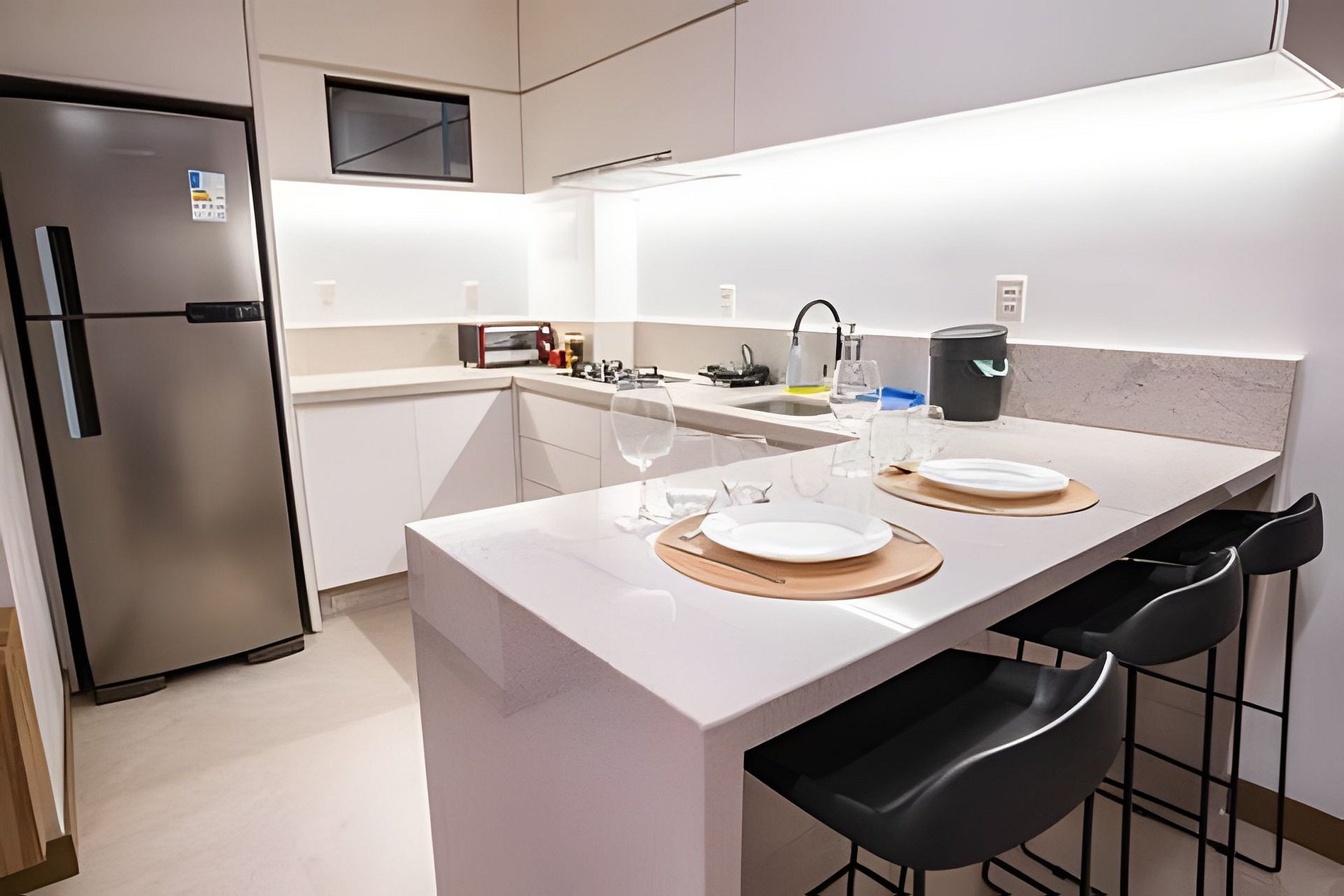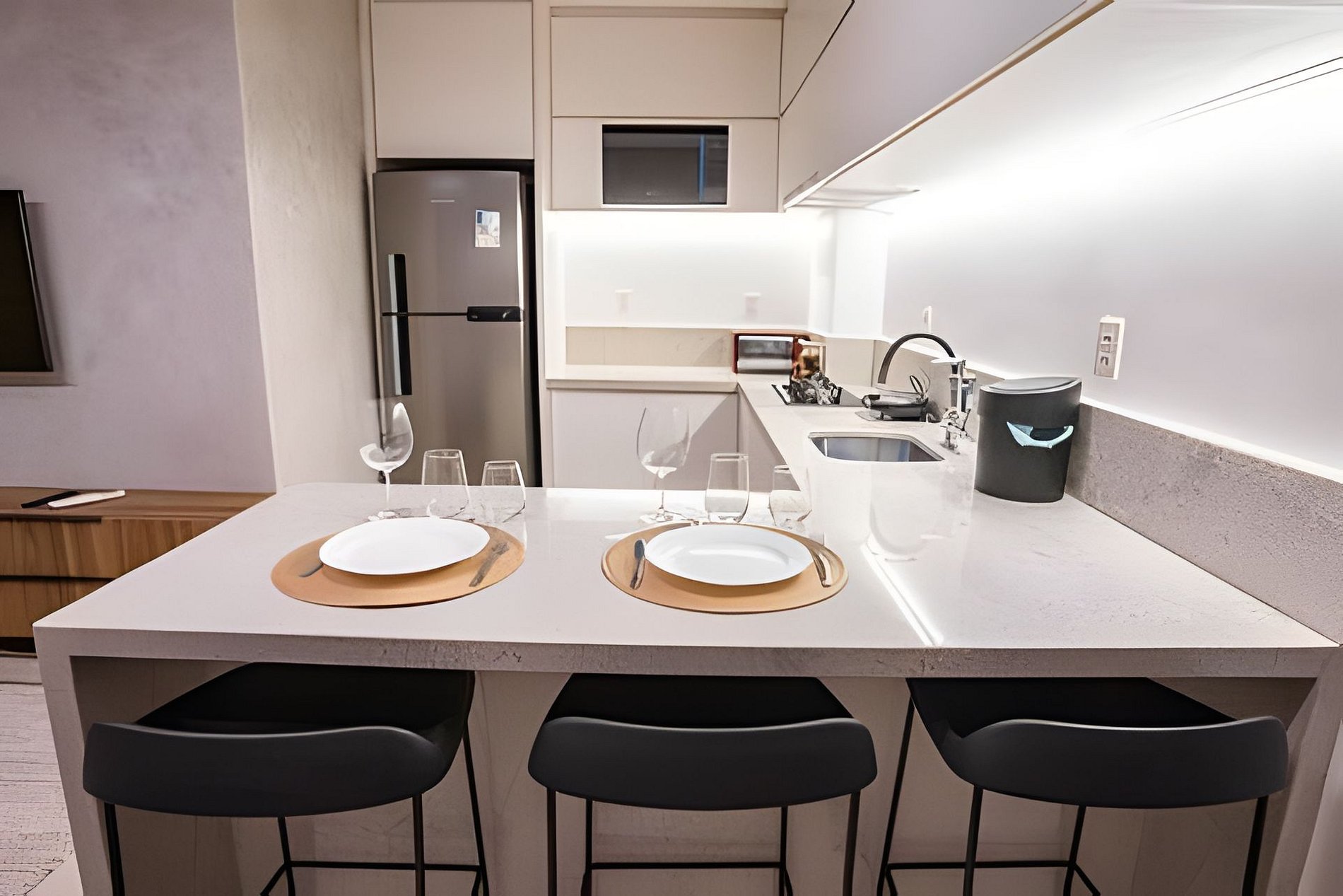 This apartment was designed to provide a unique experience, combining comfort, sophistication, and practicality. Here are some highlights: